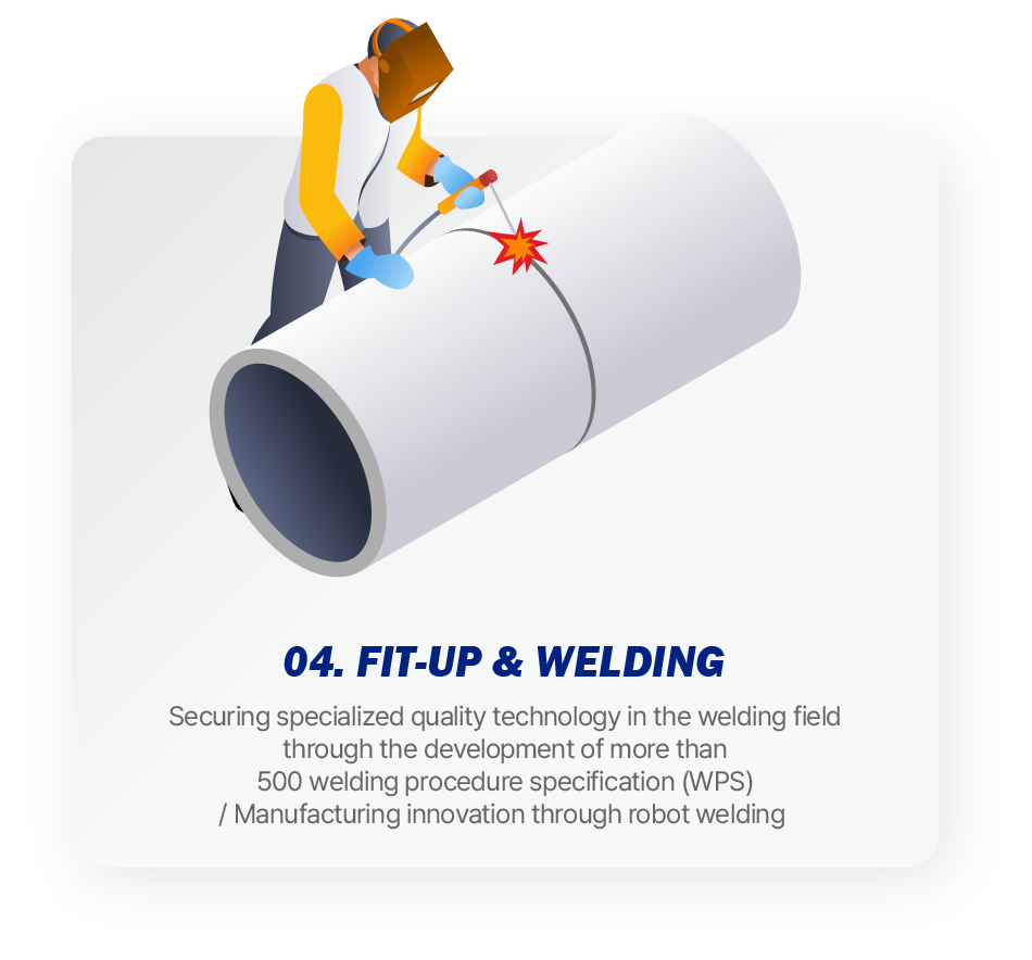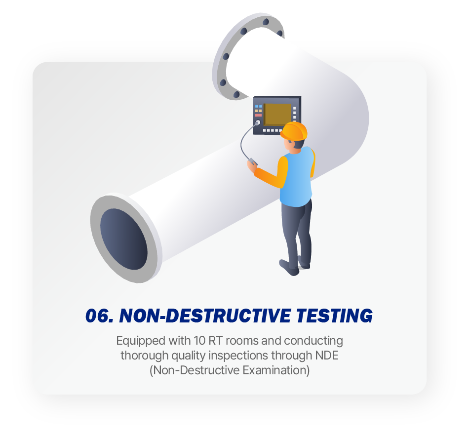Under ASME, DNV, KEPIC, and other international and domestic certification standards, we operate a top-tier, facility for Piping spool & Induction Bend. Every step of the manufacturing process is conducted under strict quality control.